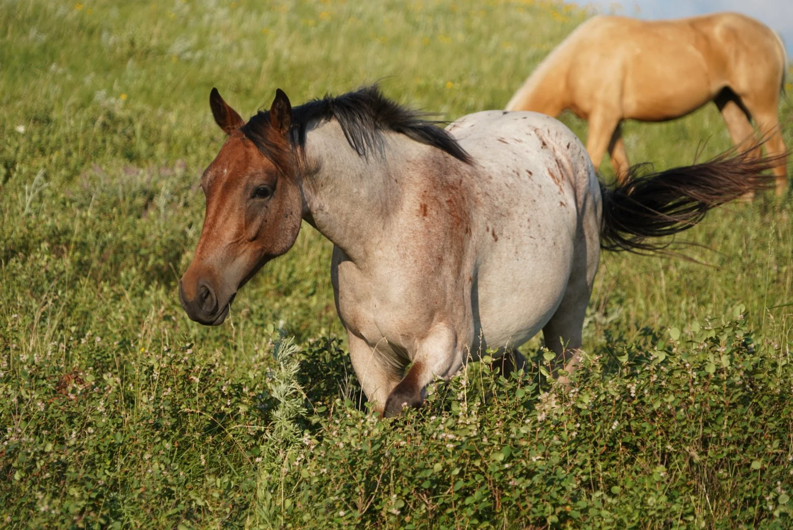 Bareback with ropes swinging to his right and above, Rocky just sits back and hangs out.